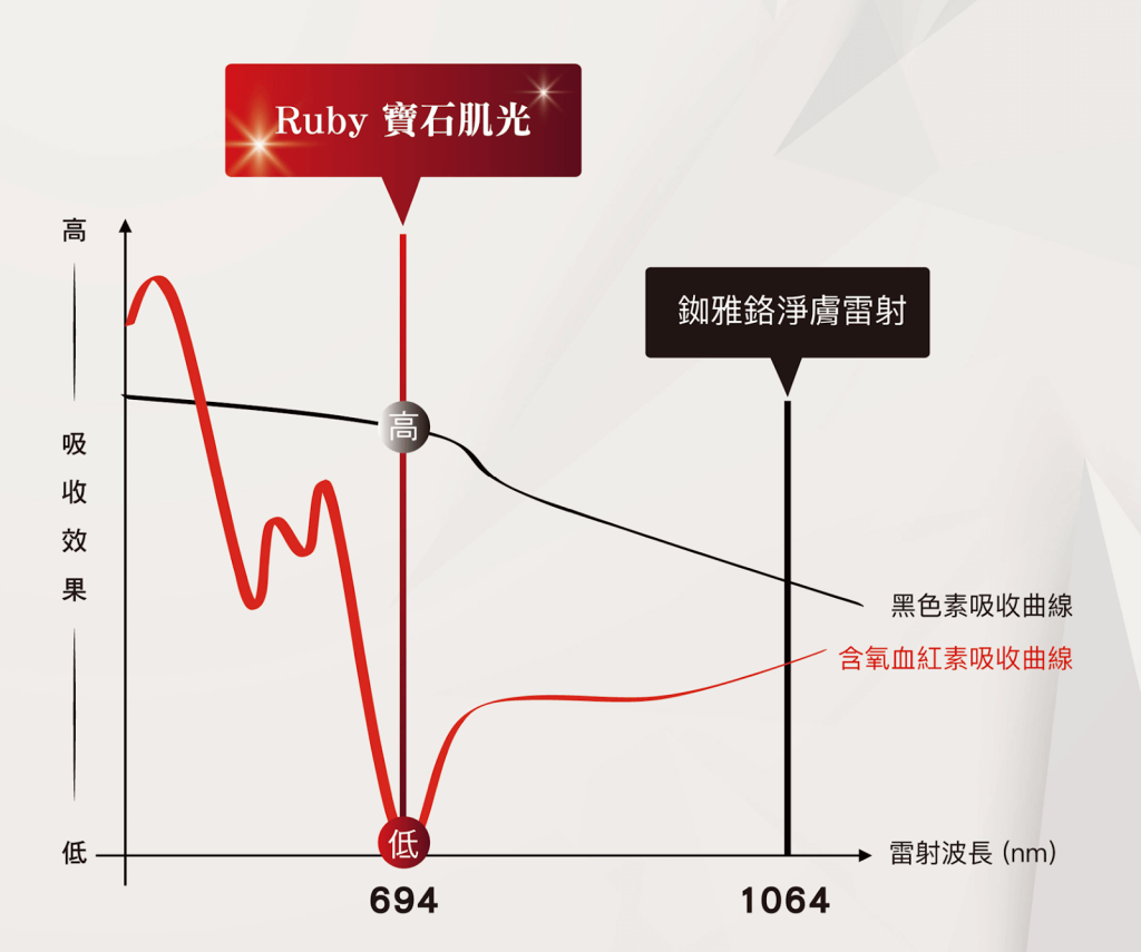 Ruby 寶石肌光 採用經典的 694nm 紅寶石波長,過去因設備限制逐漸被市場取代,如今經過技術升級重磅回歸。